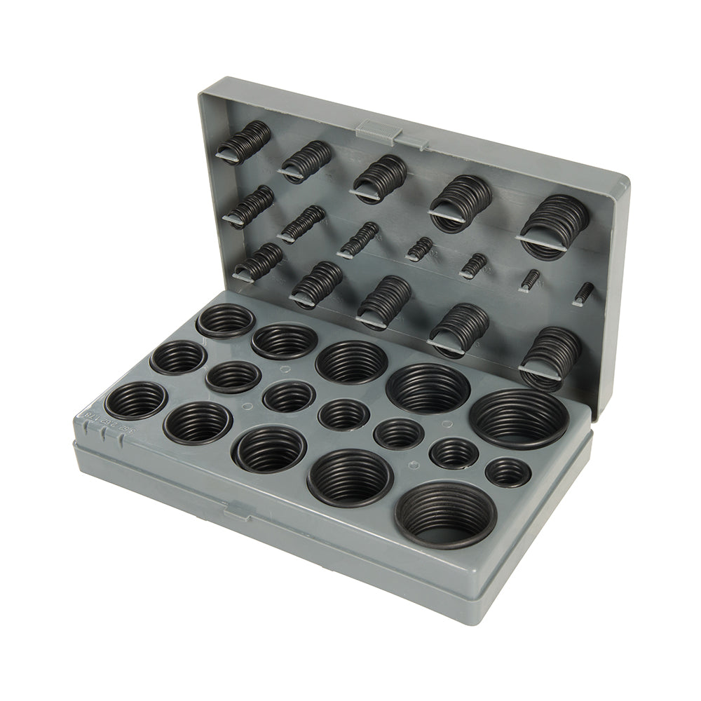 Rubber O-rings for sealing gaps between two surfaces. Use to create air and watertight seal between materials or objects. Multiple applications from plumbing to watch repair. Includes assorted sizes 6 to 57mm. Handy storage case with compartments.