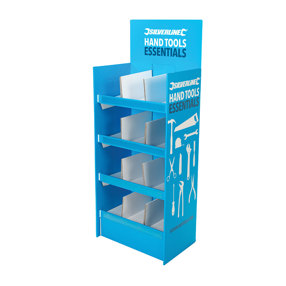 Silverline-branded freestanding display unit. Dimensions (H x W x D) 1200 x 585 x 380mm.