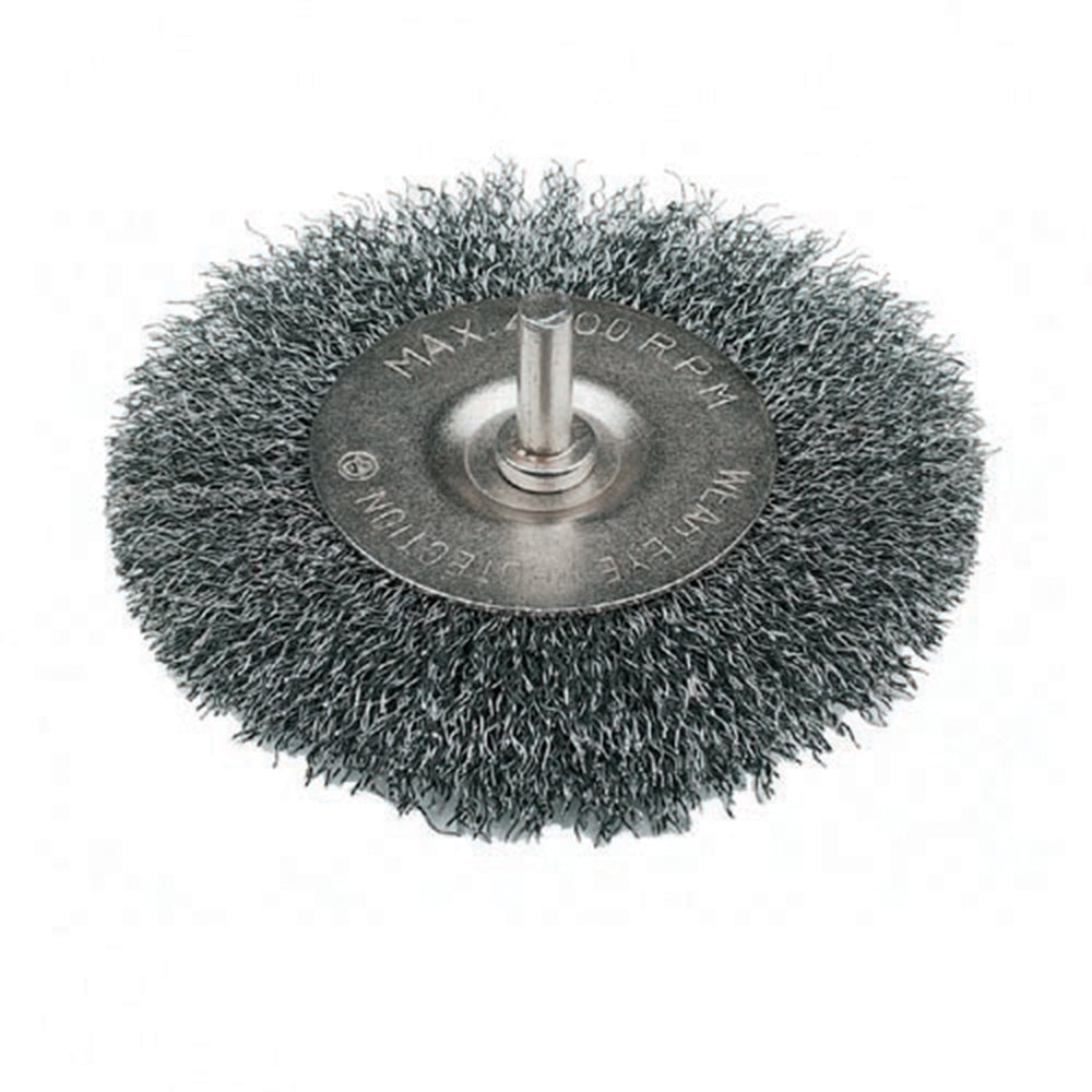 High tensile steel wire, 0.3mm diameter, for rust and paint removal, descaling, deburring and preparation of welding seams. For metal and stone working, cleaning, surface preparation and fabrication tasks. Use with power drills. 6mm shank.